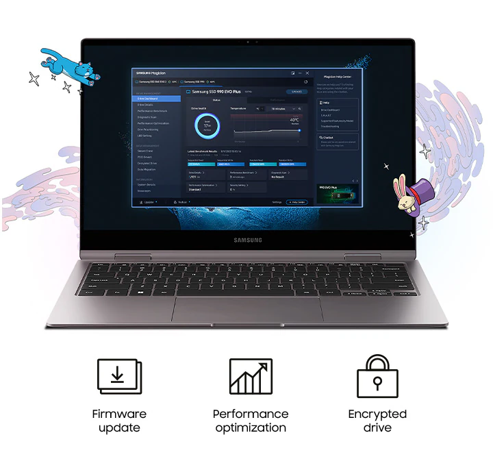 תן ל-SSD שלך לעבוד בצורה מושלמת. כלי האופטימיזציה של תוכנת Samsung Magician מבטיחים את הביצועים הטובים ביותר של ה-SSD. התוכנה מאפשרת שדרוג קל ובטוח של כל הנתונים שלך לכונן SSD של Samsung. הגן על נתונים חשובים, עקוב אחר מצב הכונן וקבל עדכוני קושחה חדשים.