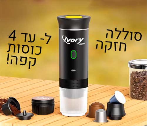 מציאון - מכונת אספרסו ניידת Ivory Home תואמת קפסולות וקפה טחון - צבע שחור - IVH-ESPRESSO - מוחדש