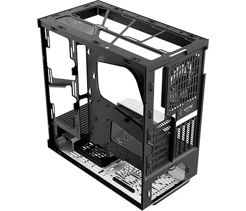 מגן ייחודי לכבל ה-Riser משתלב בצורה אלגנטית בתוך המארז, ומאפשר התקנה של כרטיסי PCIE בגובה חצי-חריץ מאחורי כרטיס המסך האנכי.