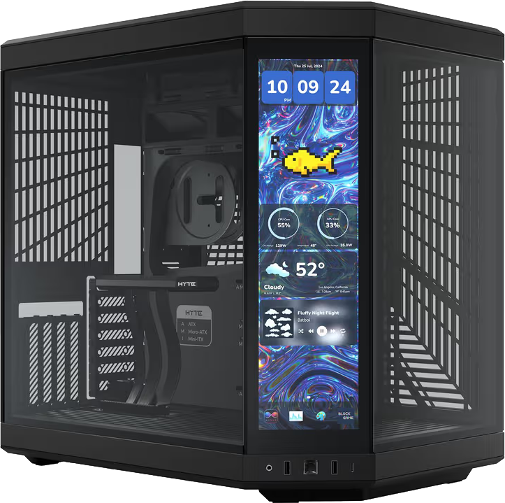 מארז מחשב עם מסך מגע HYTE Y70 touch infinite כולל כבל רייזר לכרטיס מסך - בצבע שחור
