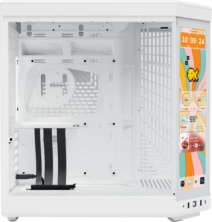המארז מגיע עם מסך מגע מסוג IPS המספק חוויית צפייה חדה במיוחד וחלקה להפליא, עם יכולת מגע מרובת נקודות, המאפשרת מגוון אפשרויות והתאמה אישית באמצעות תוכנת HYTE Nexus. הפאנל החדש מהדור השלישי גדול יותר ובהיר יותר, עם תצוגה של 14.9 אינץ' ובהירות גבוהה יותר ב-43% לחוויית משתמש סוחפת במיוחד. כל זה במארז משולב הפורץ דרך באינטראקציה דיגיטלית עם התצוגה הטובה ביותר שנראתה אי פעם במארז מחשב.