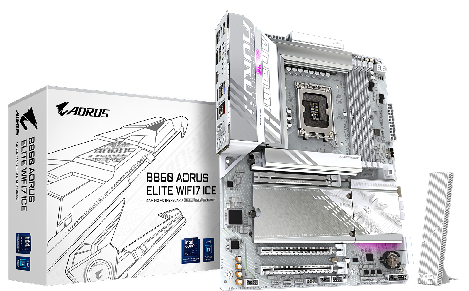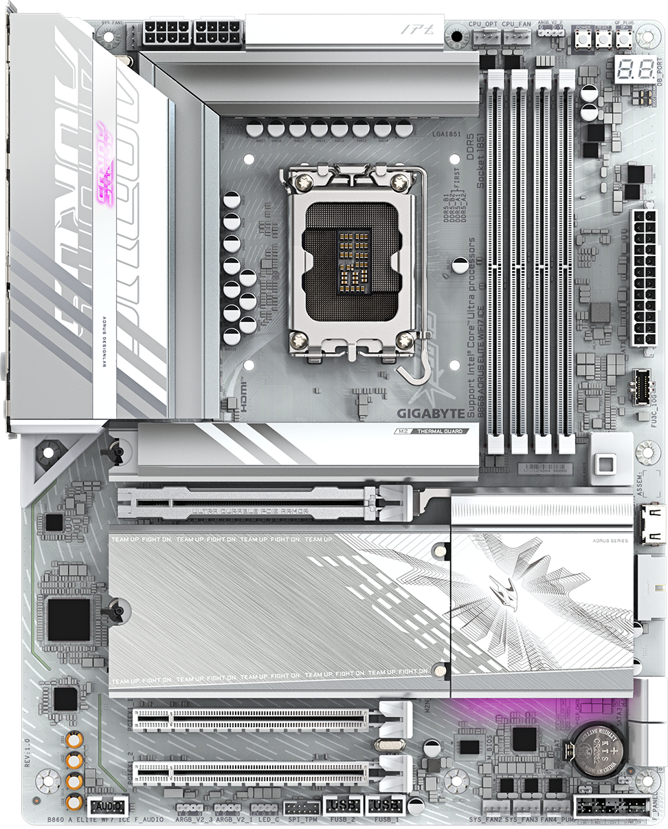 לוח אם Gigabyte B860 AORUS ELITE WIFI7 ICE DDR5 ATX בצבע לבן
