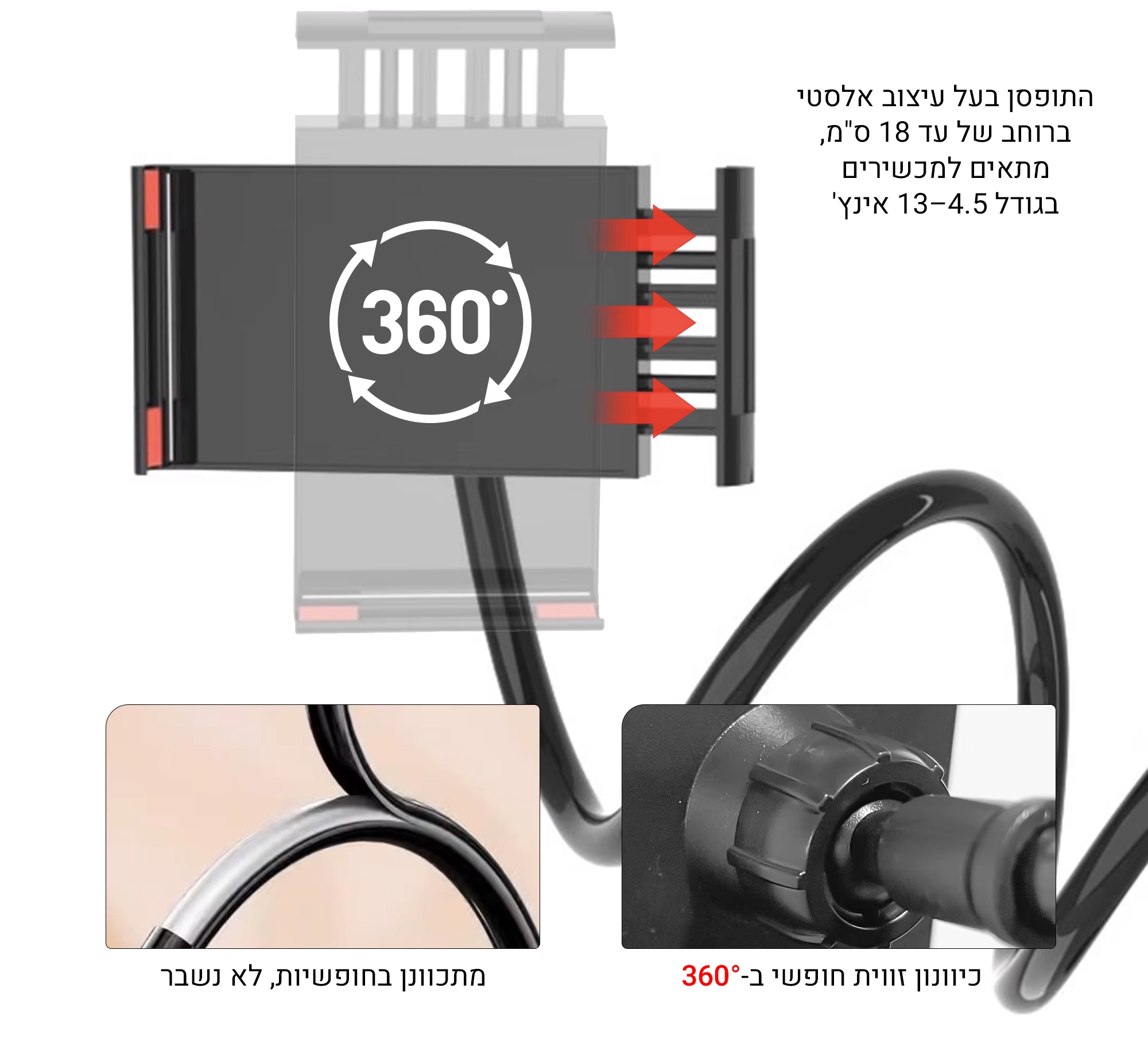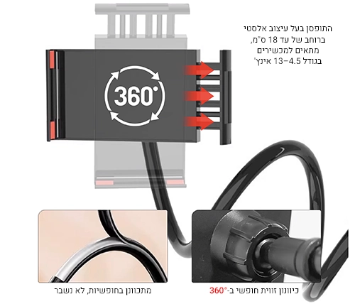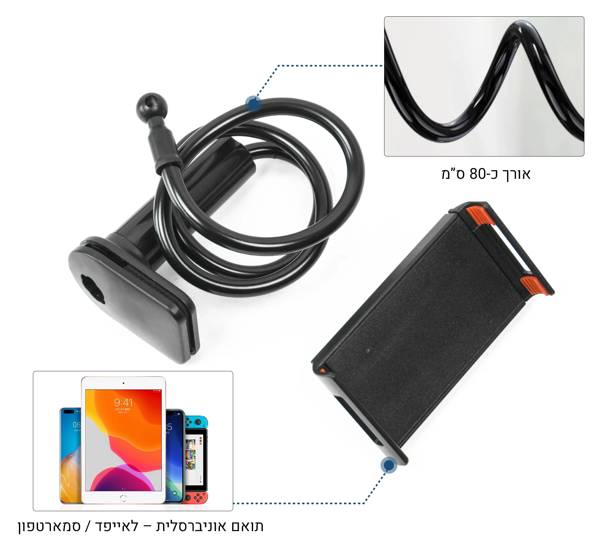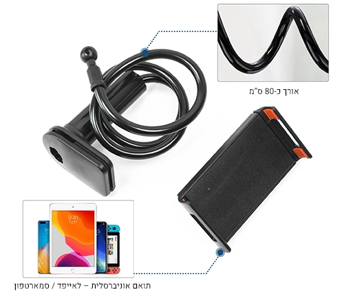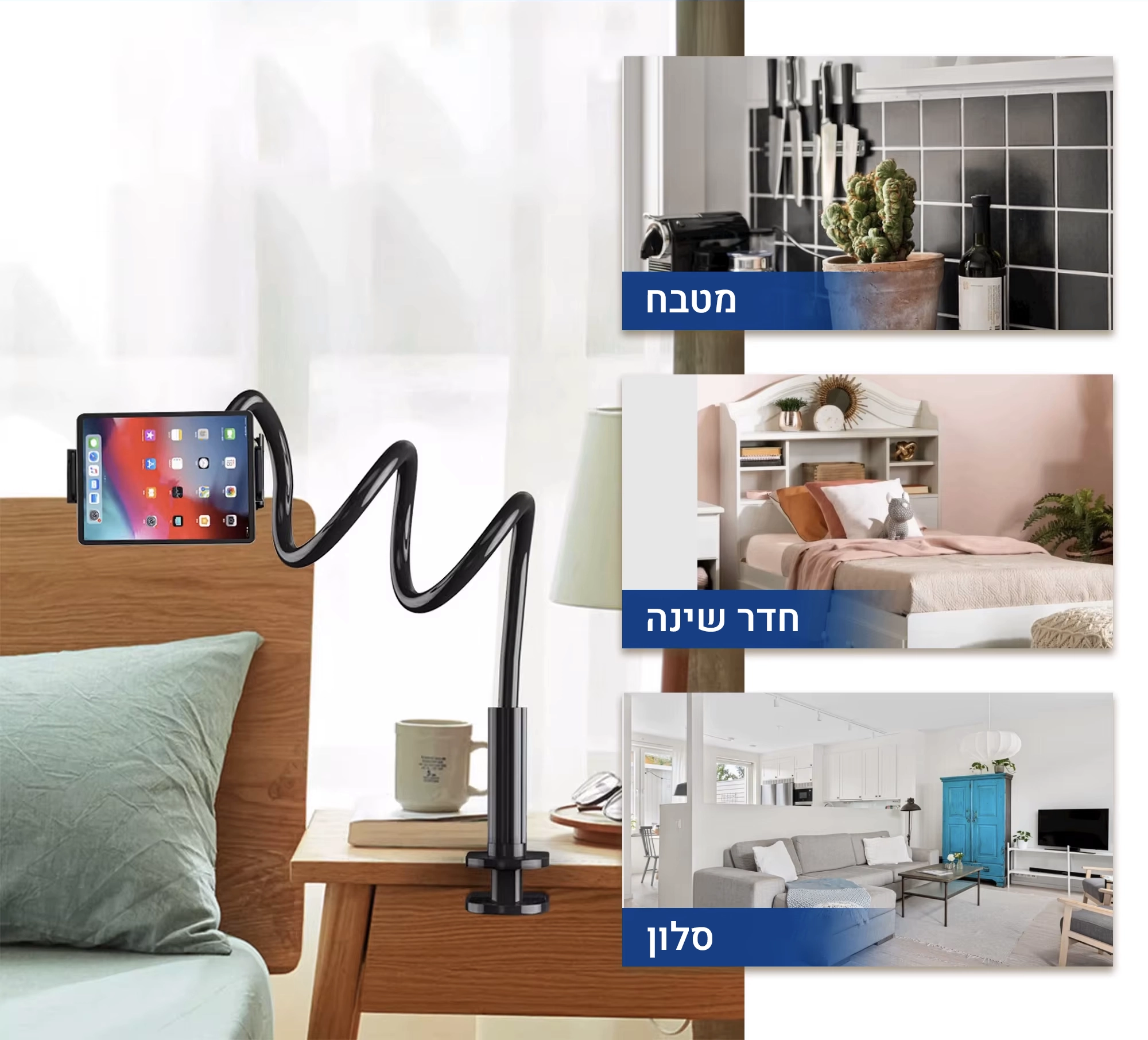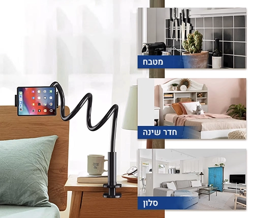 זרוע לסמארטפון ולטאבלט גמישה עם תופסן לשולחן או למיטה Ivory