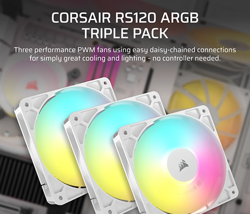 דלגו על רכזות מאווררים וכבלים מיותרים – חברו בשרשור את מאווררי סדרת RS ARGB ברצף ושלוט בכולם דרך מחבר 4 פינים PWM אחד ומחבר +5V ARGB אחד בלבד ישירות מהלוח האם.