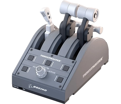 על ציר העלרוד, ברמת דיוק של 16 סיביות (65,536 x 65,536 ערכים) 18 לחצני פעולות, מתג ראש "נקודת מבט" עם 8 כיוונים, ובקר מיני-ג'ויסטיק עם לחצן! שקע מיקרופון סטריאו 3.5 מ"מ לחיבור אוזניות (אינן כלולות) 2 מחברים: עבור TCA Quadrant Boeing Edition, ומערכת הגה כיוון חיצונית אופציונלית TFRP אוTPR (3 צירים נוספים, עם 1,024 ערכים לכל ציר) תושבת לטאבלט או לטלפון חכם (לא כלולים)