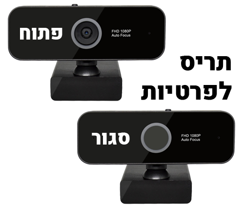 למצלמה תריס הזזה עם כפתור בראש המצלמה.