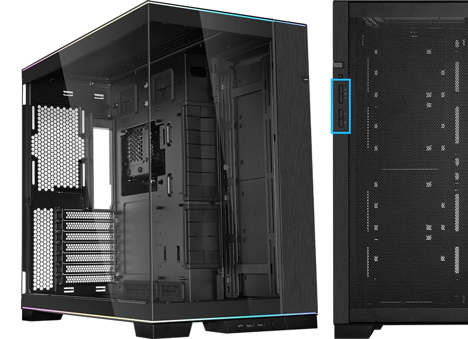 הכירו את ה-O11D EVO RGB החדש לגמרי, המצויד בפסי תאורת ARGB כפולים העוברים דרך החלק העליון והתחתון של המארז, ויוצרים מראה מרהיב. החלל הפנימי המורחב מספק תאימות רבה יותר לרכיבים, ומציע חוויית בניית מחשב יוצאת דופן.