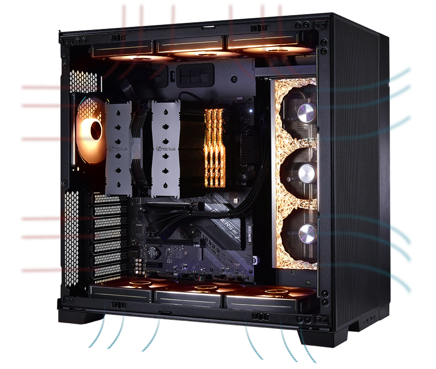 ככל שזרימת האוויר ישירה יותר – כך ביצועי הקירור טובים יותר. בזכות ערכת GPU אנכית ורשת קדמית שמאפשרת הוספה של שלושה מאווררים נוספים מקדימה, ה-O11D EVO מספק זרימת אוויר עוצמתית וישירה אל ה-GPU וה-CPU.