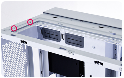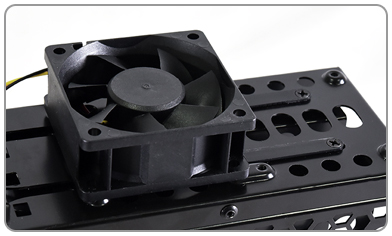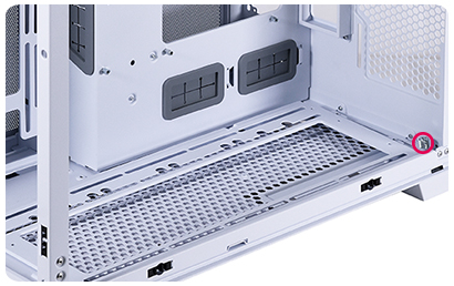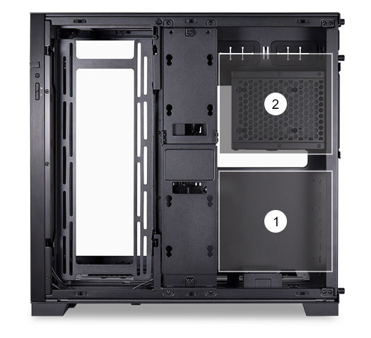 ניתן למקם את התושבת הצדדית בשתי תצורות שונות כדי לספק מרווח גדול יותר לשילובים של מאווררים/רדיאטורים לצד לוח האם.