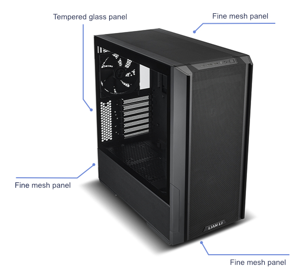 ה-LANCOOL 216 הוא מארז עם פאנלים מרושתים מכל הכיוונים לאוורור אופטימלי. הודות לפאנל אחורי מודולרי, ניתן להתאימו לקירור באוויר או לקירור במים. הוא כולל 2 מאווררי 160 מ"מ ומאוורר 140 מ"מ נוסף מסוג PWM מותקנים מראש, וכן תושבת מאוורר חדשנית בחריצי PCIe מאחור למקסימום זרימת אוויר.