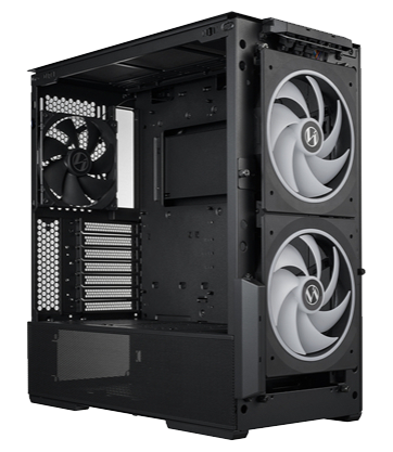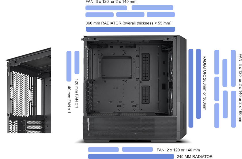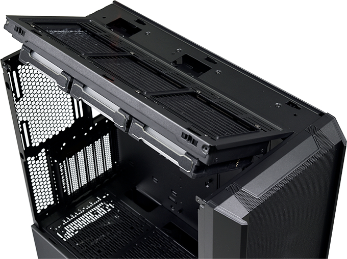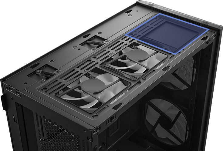 כאשר לוח האם מותקן נמוך יותר, נותר מרווח בעובי 63 מ"מ בחלק העליון, שמאפשר התקנת קומבינציות של רדיאטורים/מאווררים – אידיאלי עבור AIO או מערכות קירור מים מותאמות אישית.