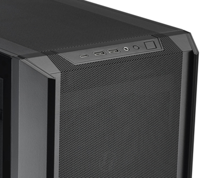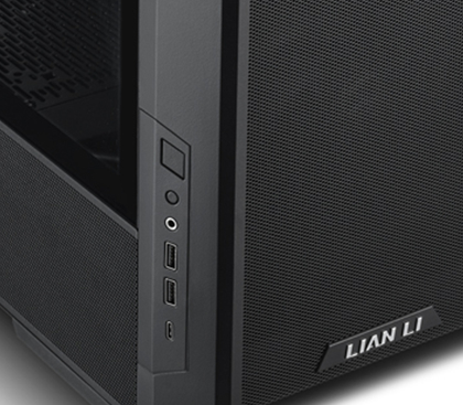 כולל כפתור הפעלה, כפתור ריסט, יציאת שמע, 2 יציאות USB 3.0 ויציאת USB Type C – מודול ה-I/O הקדמי ניתן להעברה לצד השמאלי התחתון של הפאנל הקדמי.