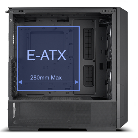 ה-LANCOOL 216 תומך בלוחות אם מסוג ATX, Micro-ATX, MINI-ITX וגם E-ATX ברוחב של עד 280 מ"מ (כאשר מחזיק הגומיות מסובב ב-180°). בנוסף, עיצובו הסימטרי שומר על ניהול כבלים נוח גם בתא השני.