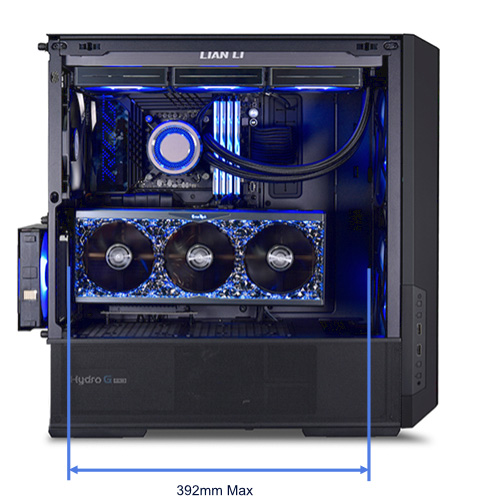 המארז תומך בכרטיסי מסך באורך של עד 392 מ"מ ובגובה של עד 180 מ"מ (במצב קירור אוויר), ומתאים גם לכרטיסי NVIDIA מהסדרות האחרונות.