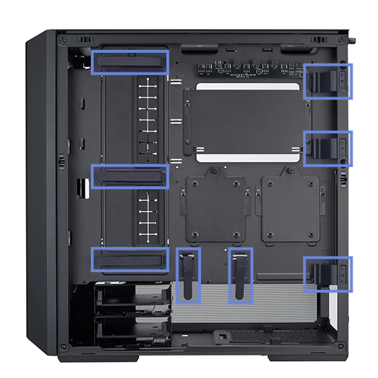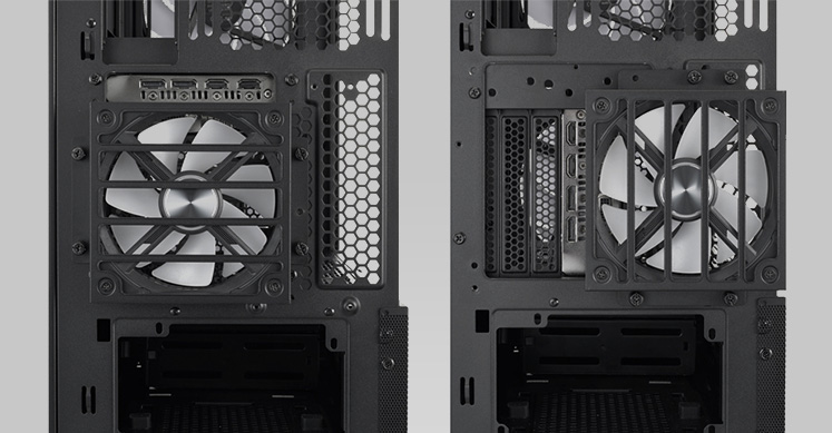 שני חריצים נבנו לאפשר מעבר קל של כבלי מאווררים לתוך התא השני, לפישוט ניהול הכבלים ולמראה מסודר יותר של המערכת.