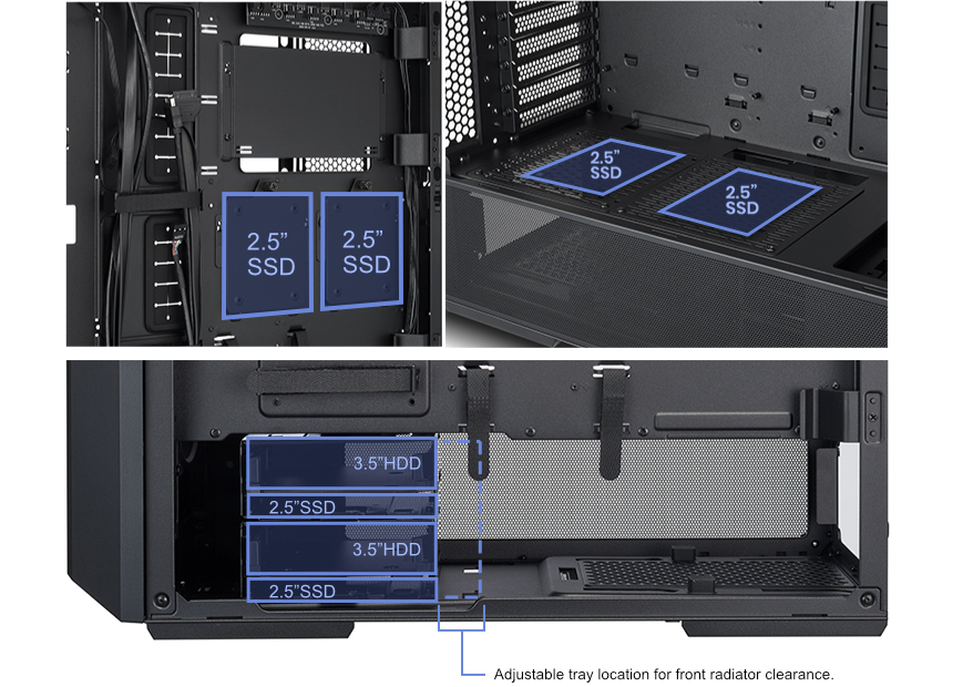 ניתן להתקין סך של 2 כונני 3.5 אינץ' ו-6 כונני 2.5 אינץ' עם תושבות ייעודיות.