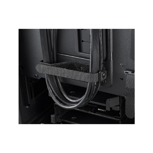ה-LANCOOL 216 מציע מגוון פתרונות לניהול כבלים פשוט. לאורך מוט הגומיות קיימות 3 רצועות ולקרו גדולות שיכולות לאחוז שתי קבוצות של כבלים. 3 קליפסים קטנים ממוקמים לאורך הפאנל האחורי – אידיאליים להובלת כבל ה-8pin של המעבד. בנוסף, ישנן 2 רצועות ולקרו נוספות ליד תא ה-PSU שמסייעות להרחיק את עודפי כבלי ספק הכוח מנתיב האוורור בתא התחתון.