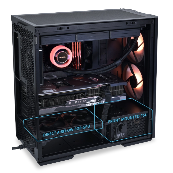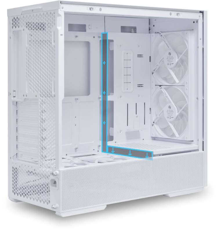 מגש לוח האם המוזז הייחודי של ה-LANCOOL 207 מספק פתרון יעיל בחלל תוך שיפור התאימות וזרימת האוויר.