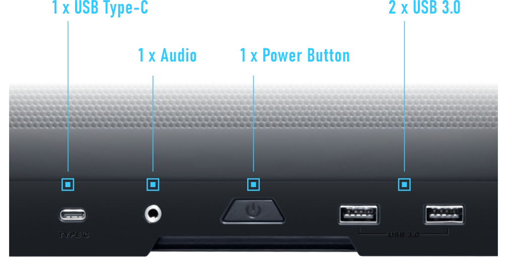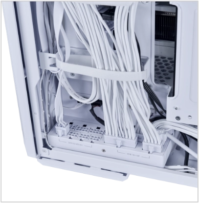 ספק הכוח ממוקם באופן אסטרטגי בחזית, כאשר חיבורי הכבלים פונים החוצה לנוחות חיבור מקסימלית. בנוסף, כבל מאריך מסופק לגישה אחורית לחשמל.