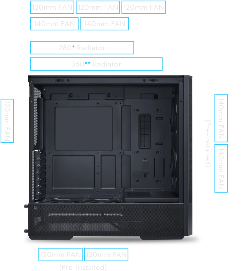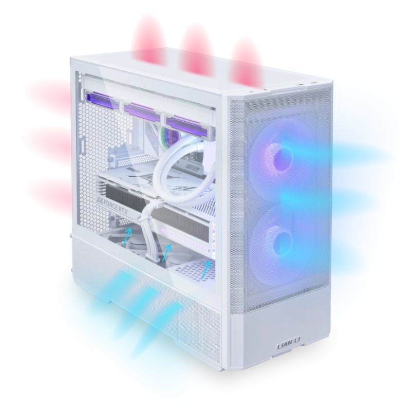 בנוסף לפאנלים רשתיים מקיפים בחלק העליון, הקדמי והתחתון בצד, ה-LANCOOL 207 מגיע עם ארבעה מאווררים בעלי ביצועים גבוהים מותקנים מראש, לקבלת קירור מיטבי מיד עם ההתקנה.