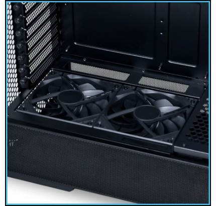 חלקו העליון של המארז תומך בתצורת רדיאטור push-pull של 360 מ"מ בזכות עיצוב מגש לוח אם מוזז.