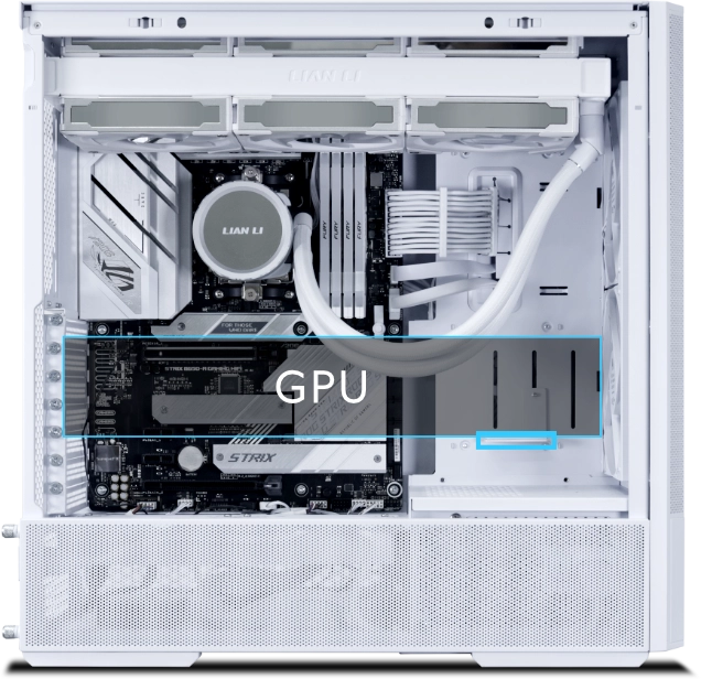 ה-LANCOOL 207 תומך בכרטיס מסך באורך של עד 375 מ"מ, ומגיע עם תושבת מתכווננת נגד שקיעה (Anti-Sag), המבטיחה שה-GPU יישאר מיושר בצורה מושלמת.
