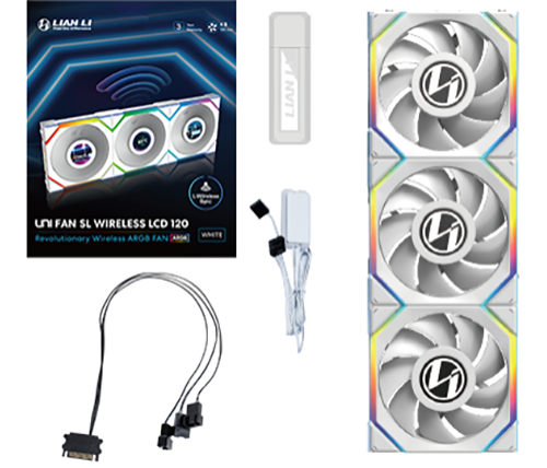 3 מאווררים למארז 12 ס''מ עם מסך Lian Li UNI FAN SL Wireless - צבע לבן