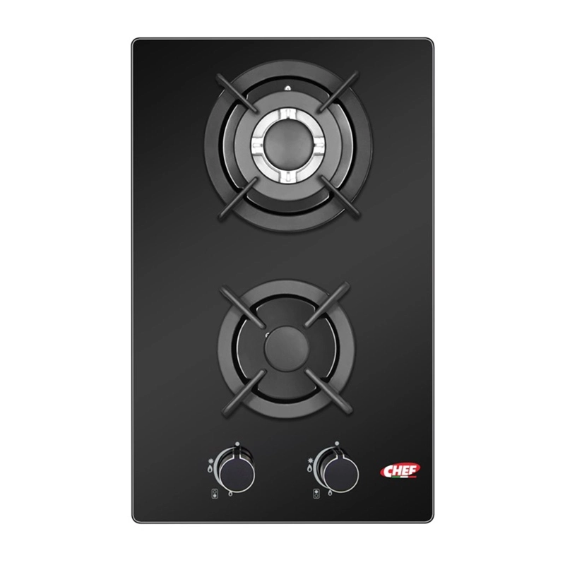 כיריים גז 2 להבות דומינו בגימור זכוכית שחורה Chef GB3004 29x51