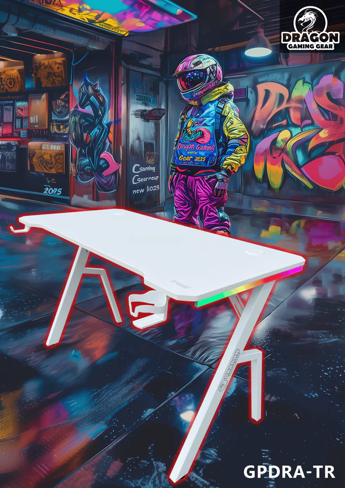שולחן גיימינג תאורת RGB אורך 120 סמ לבן דרגון Dragon TR – משלוח חינם