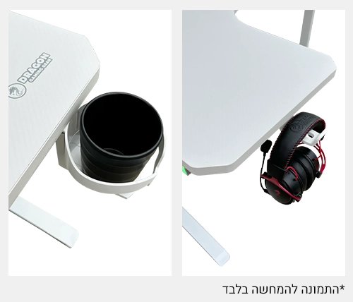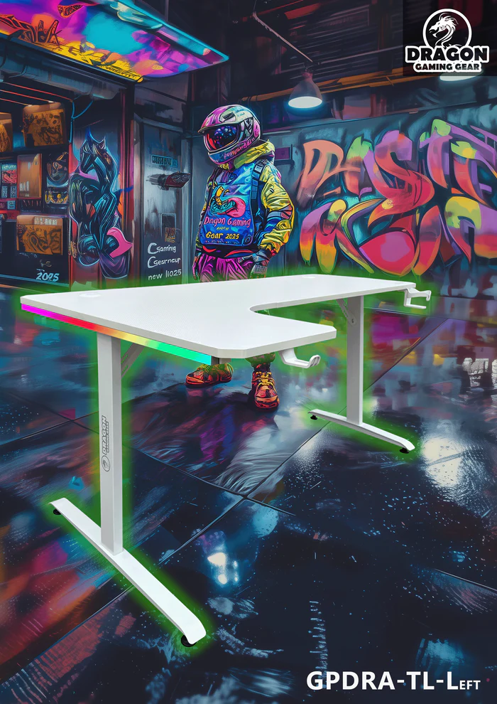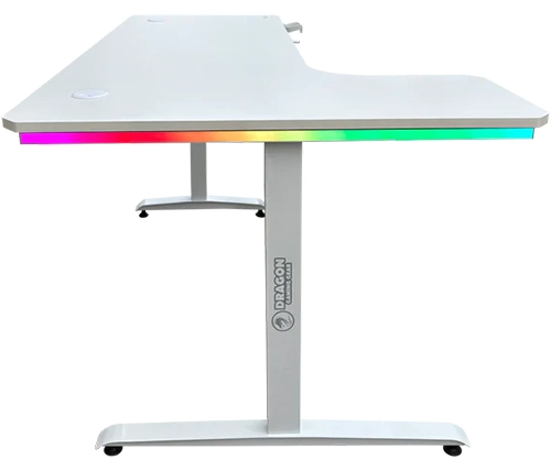 שולחן גיימינג פינתי שמאל תאורת RGB לבן 160*100 סמ דרגון Dragon – משלוח חינם