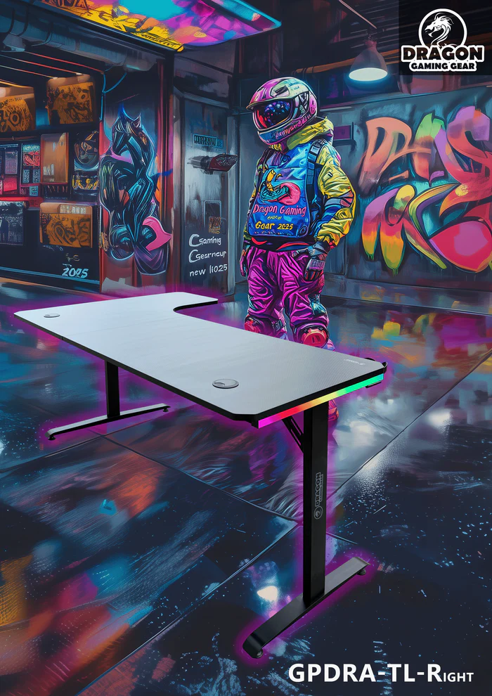 שולחן גיימינג פינתי ימין תאורת RGB שחור 160*100 סמ דרגון Dragon – משלוח חינם