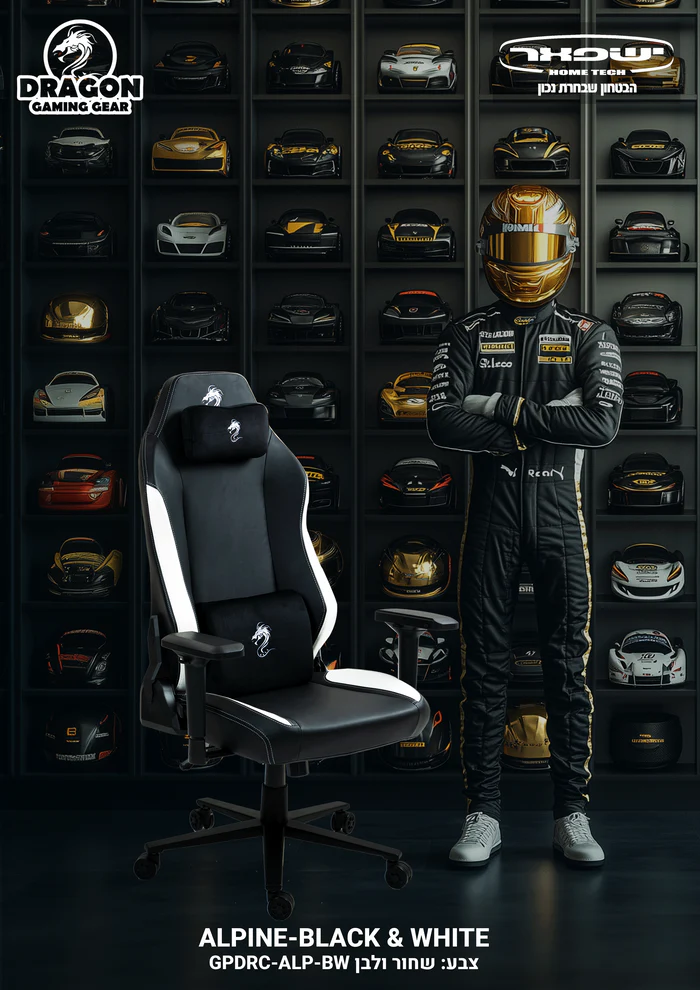 כיסא גיימינג ALPINE דמוי עור שחור לבן דרגון Dragon – משלוח חינם