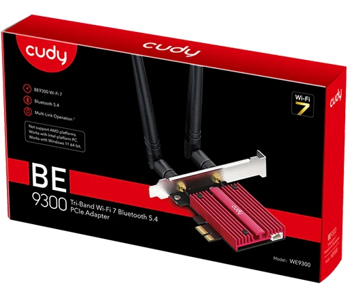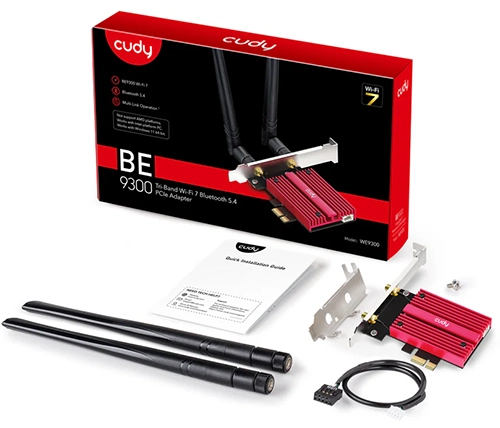 מתאם רשת אלחוטי Cudy WE9300 BE9300 Wi-Fi 7 Bluetooth 5.4 PCI-E – למחשבים עם מעבד אינטל