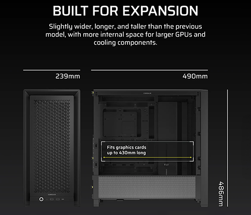 בהשוואה לפאנל הקדמי של 4000D Airflow הקודם