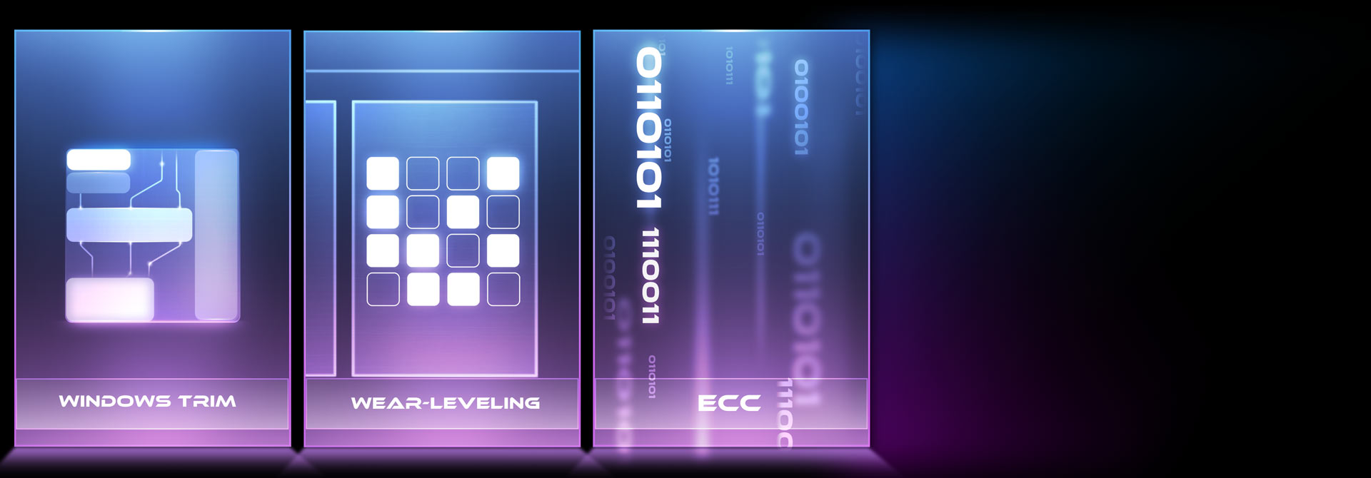 אופטימיזציית TRIM של Windows לכונני SSD מבטיחה שימוש יעיל בבלוקים פנויים ברגע שהם משתחררים, כדי לשפר את מהירויות ההעברה והכתיבה. טכנולוגיית איזון השחיקה ו-ECC משפרות את אמינות העברת הנתונים ומאריכות את חיי הכונן.
