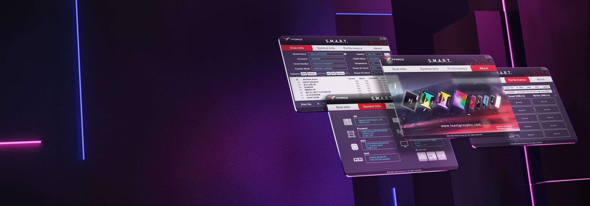 תוכנת הניטור S.M.A.R.T. של TEAMGROUP עוקבת באופן שוטף אחר מצב ה-SSD ומבצעת הגדרות ובדיקות מהירות וקלות למעקב אחר איכות וביצועי הכונן.