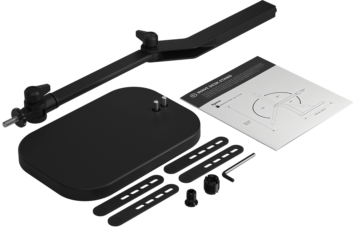 לא כל מערך דורש זרוע בום בגודל מלא. לפעמים רוצים סאונד מקצועי — בלי כל ההתעסקות. מעמד השולחני Wave Desk Stand מקרב את המיקרופון אליך, תוך שמירה על שטח עבודה פתוח. הוא מהיר וקל להתקנה בכל מקום — על שולחן העבודה או אפילו על שולחן קפה.