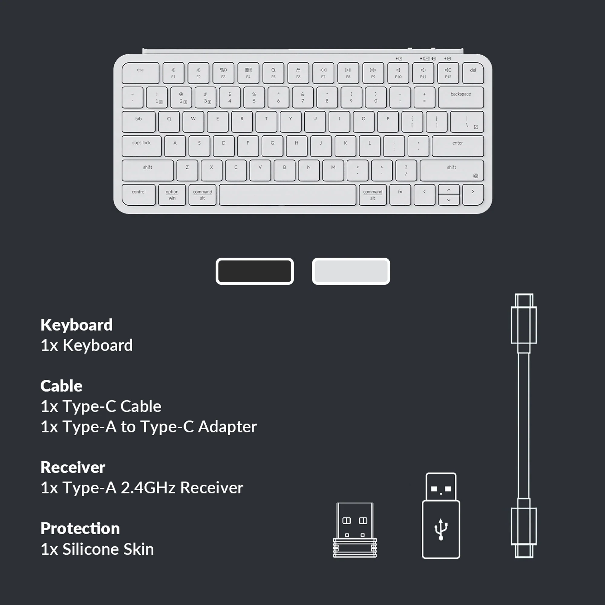 מגיעה עם פריסת מקשים למק, אך גם תואמת ל- Windows. היא מספקת את אותן פונקציות מולטימדיה ומקשי פונקציה כמו מקלדות אפל, אך עם מישוב טקטילי משופר.