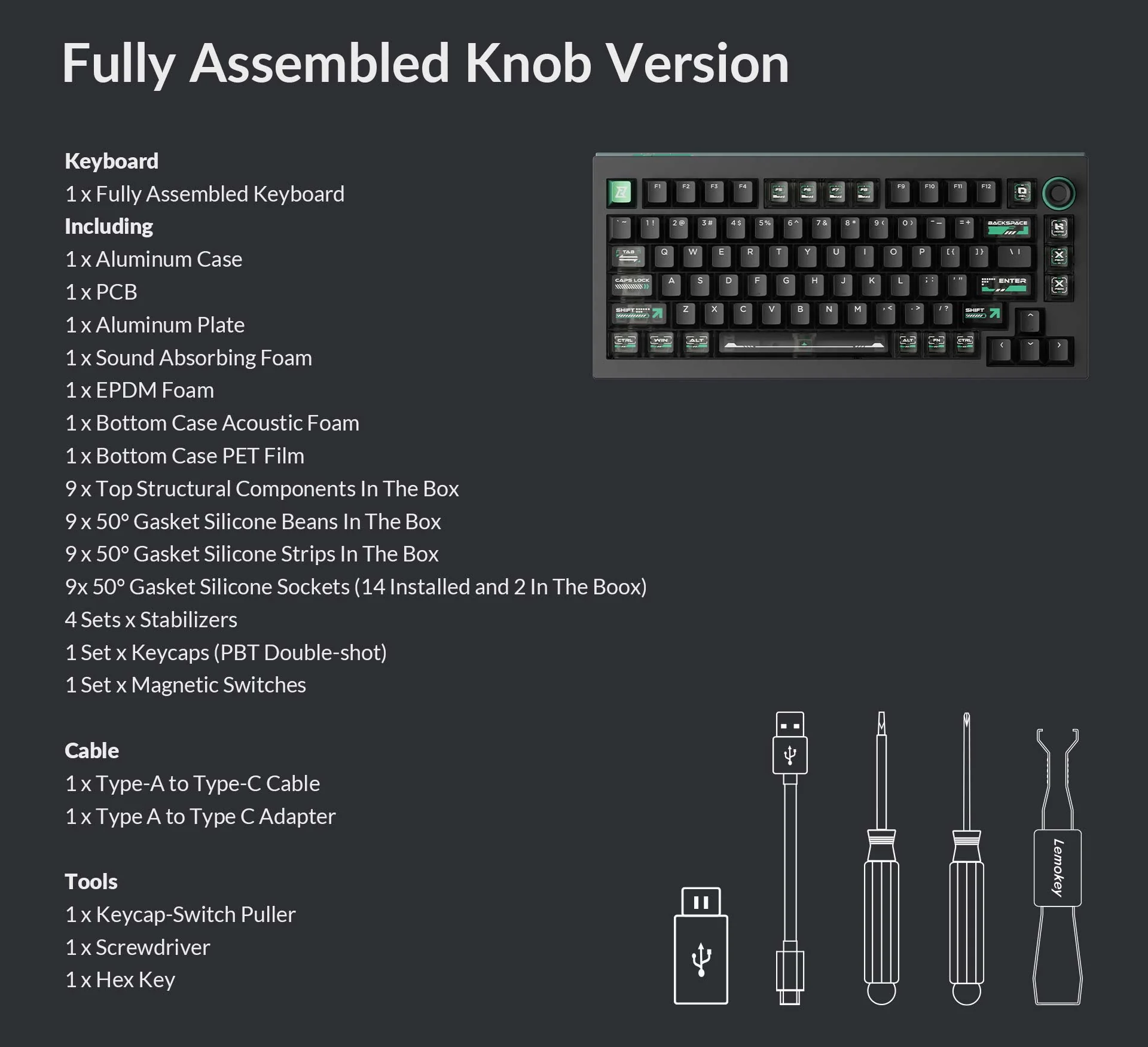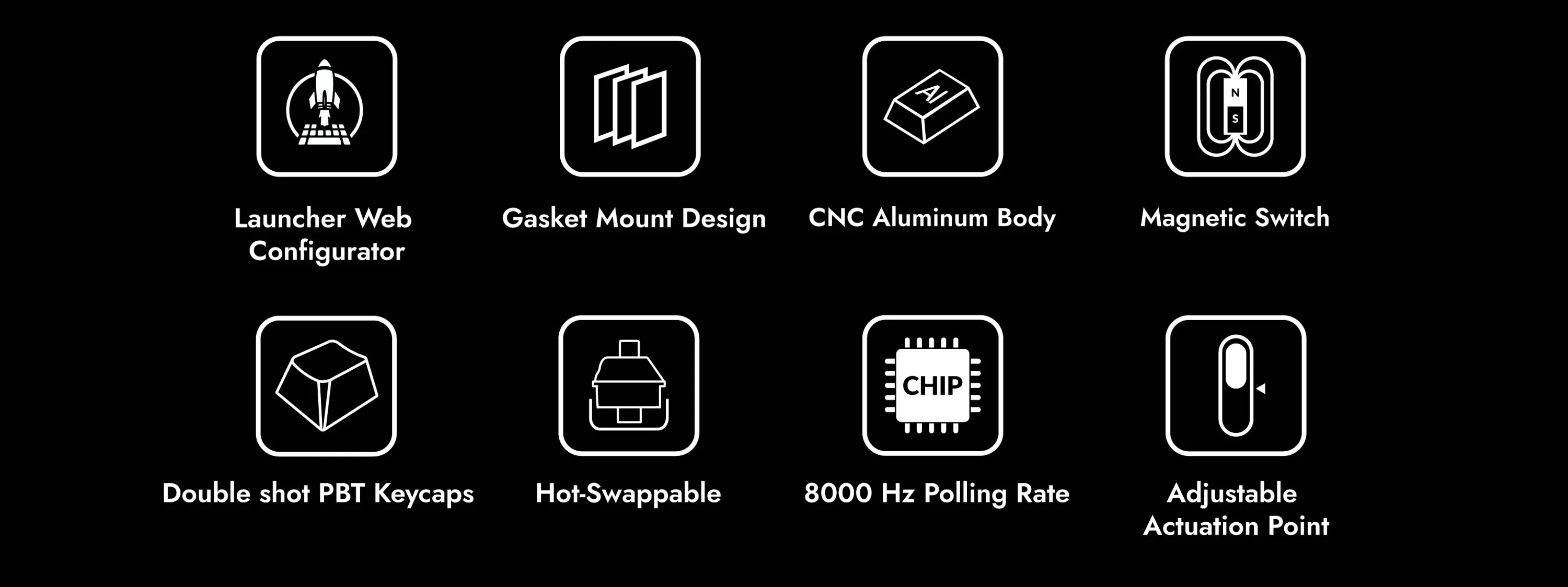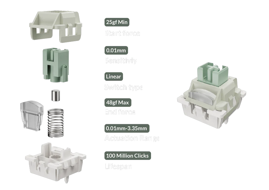המקלדת מגיעה עם מתגים מגנטיים משומנים מראש לחוויית הקלדה יציבה ותגובתית במיוחד, עם זמן תגובה מהיר במיוחד ושליטה מדויקת בתחושת ההקלדה והתגובה.