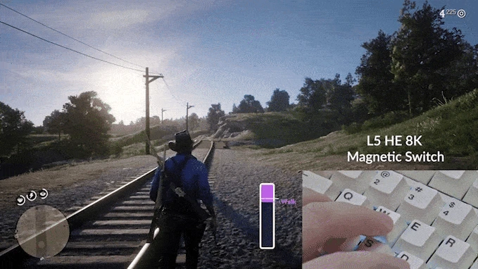 במצב אנלוגי, כמו בשלטי משחק, כל מקש מסוגל לזהות את עומק הלחיצה ולתרגם אותו למהירות תנועה משתנה. שליטה מדויקת ואינטואיטיבית למשחקי מירוצים, ספורט ועוד.
