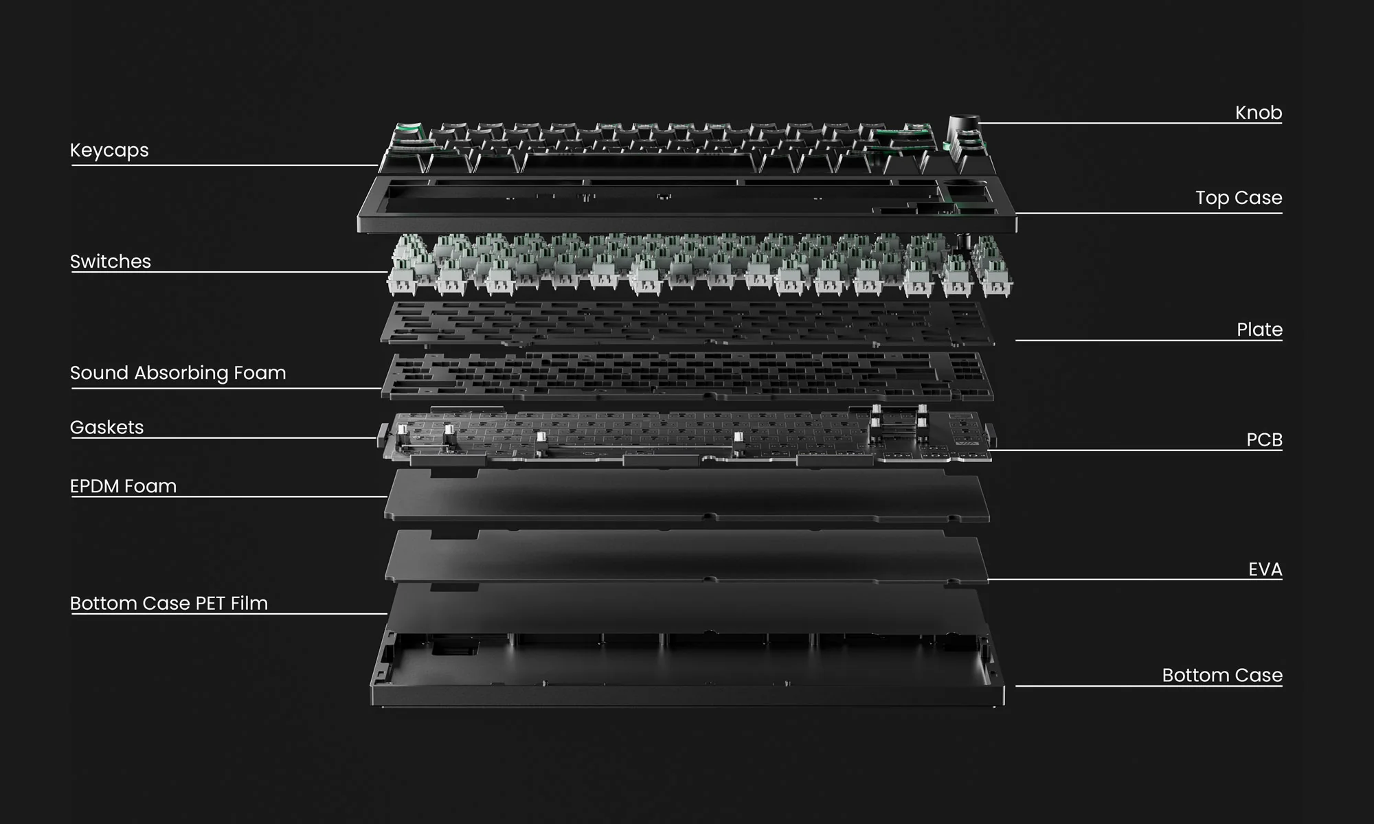המתגים עשויים מחומר POM ומספקים צליל הקלדה נעים, רך ועמוק ("thocky"), לחוויית הקלדה מהנה יותר.