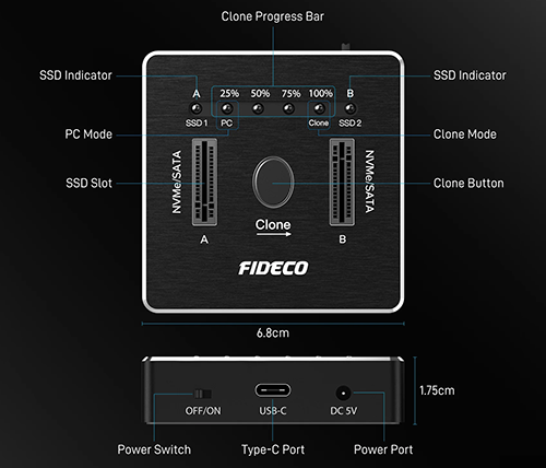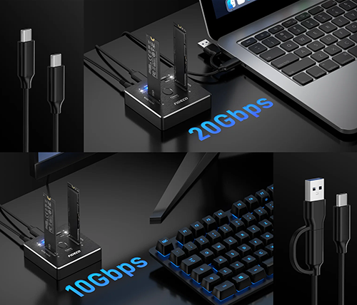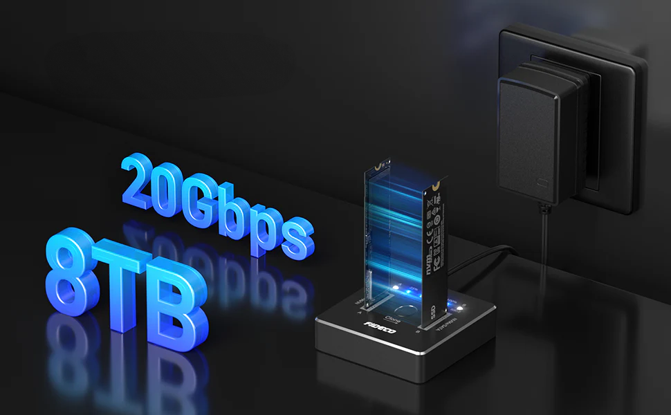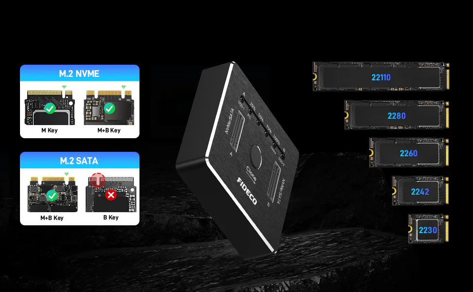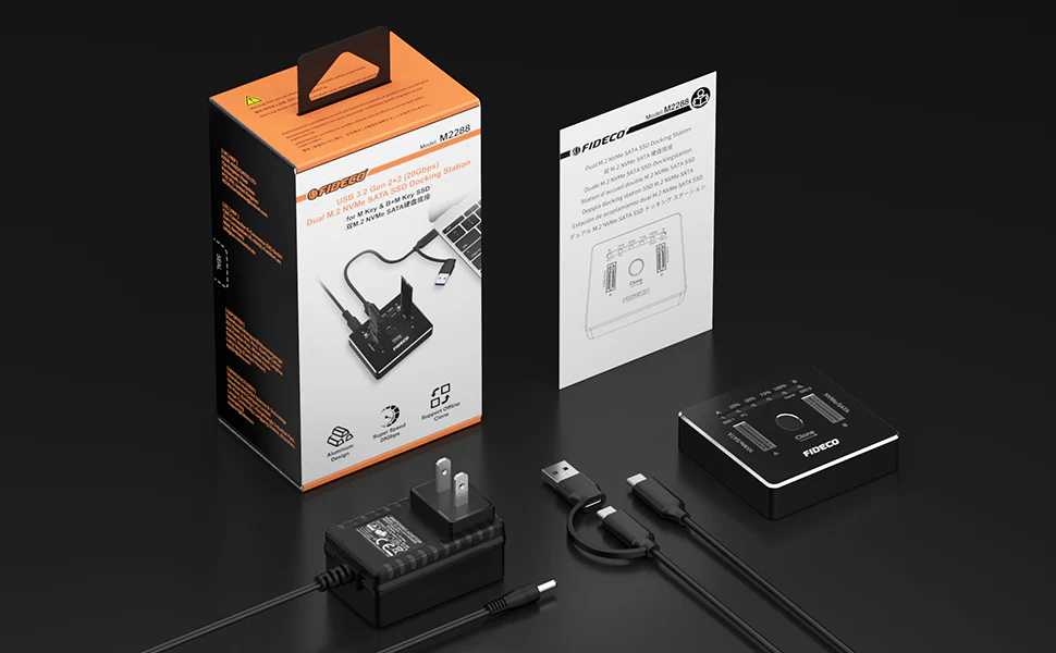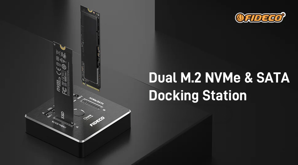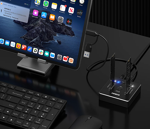 תחנת עגינה 2 מפרצים FIDECO לכונני SSD M.2 עם אפשרות שיכפול כונן