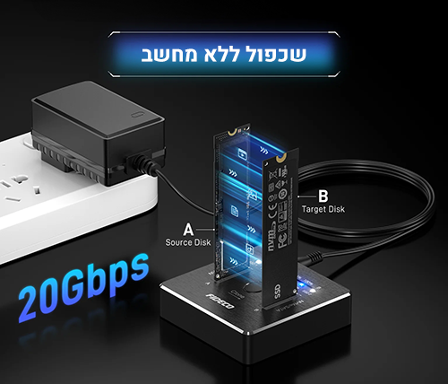 התחנה תומכת רק בשכפול NVMe ל-NVMe או M.2 SATA ל-M.2 SATA – לא תומכת בשכפול NVMe ל-SATA או להפך.