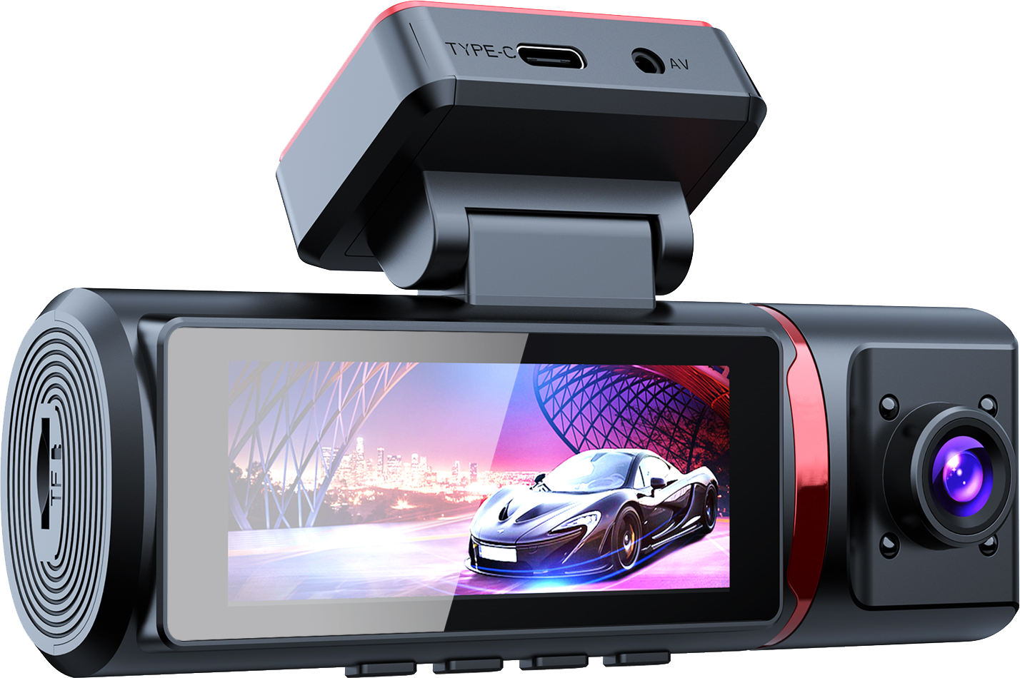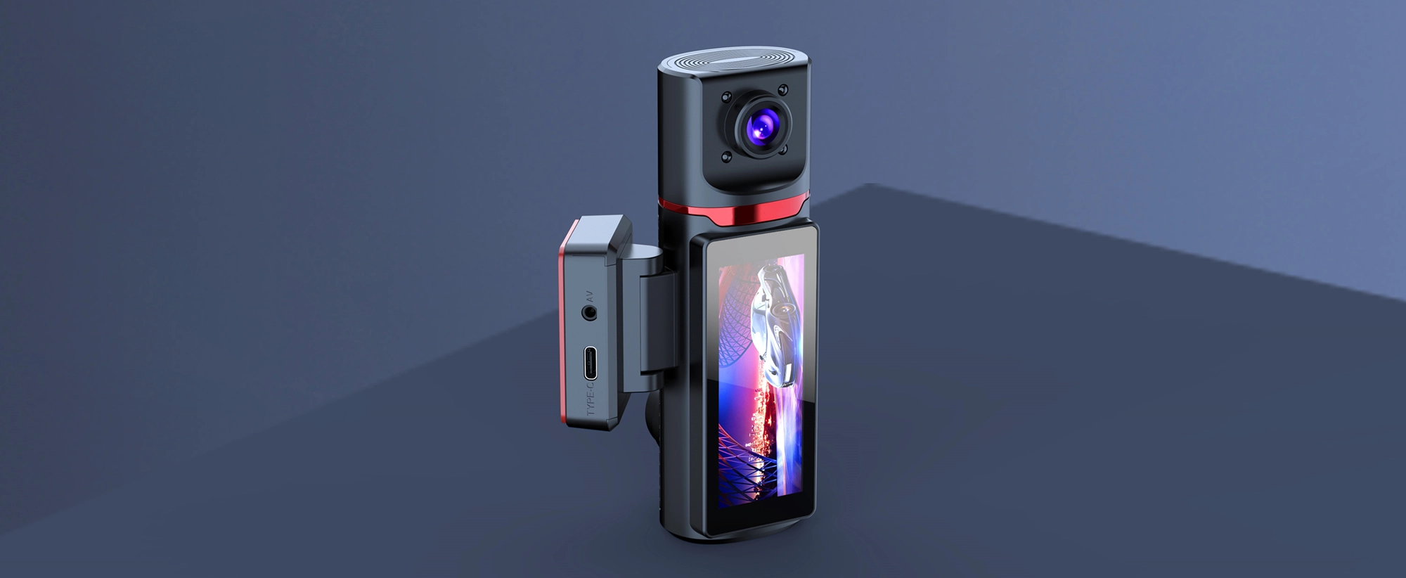 קדמית עם שתי מצלמות 4K ו1K עם ראש שניתן לסיבוב ב 180 מעלות עבור זיווית צילום נוספות או לתוך חלל הרכב.