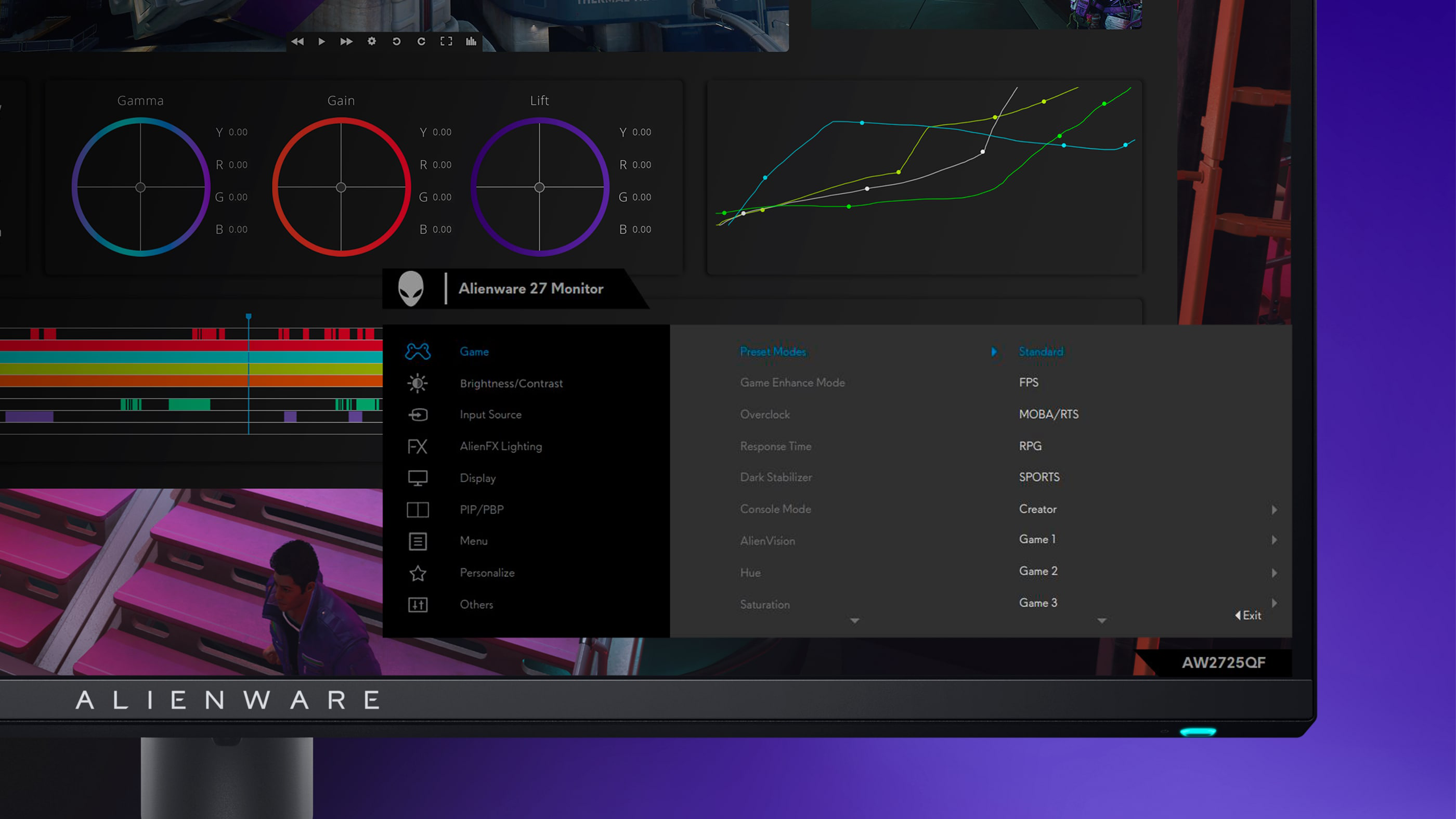 עבור יוצרי תוכן ומפתחי משחקים שזקוקים לעבודה מדויקת עם צבעים, מצב היוצר (Creator Mode) נוצר במיוחד עבורכם. בחרו בין מרחב הצבעים הטבעי (DCI-P3) לבין sRGB, בהתאם לצרכים המקצועיים שלכם, ועם אפשרות לכוונון הגדרות גאמה.