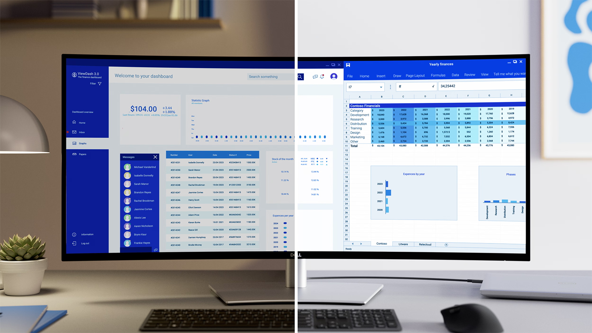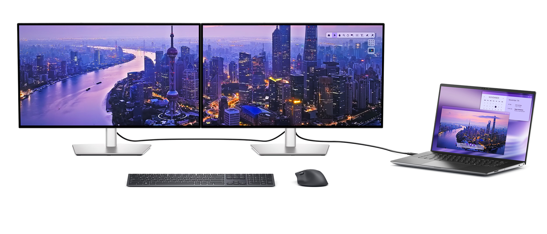 חווה איכות תמונה חסרת פשרות על ידי חיבור שרשרת (daisy chain) של שני מסכי 4K ב-Windows או macOS, בעזרת Thunderbolt 4.