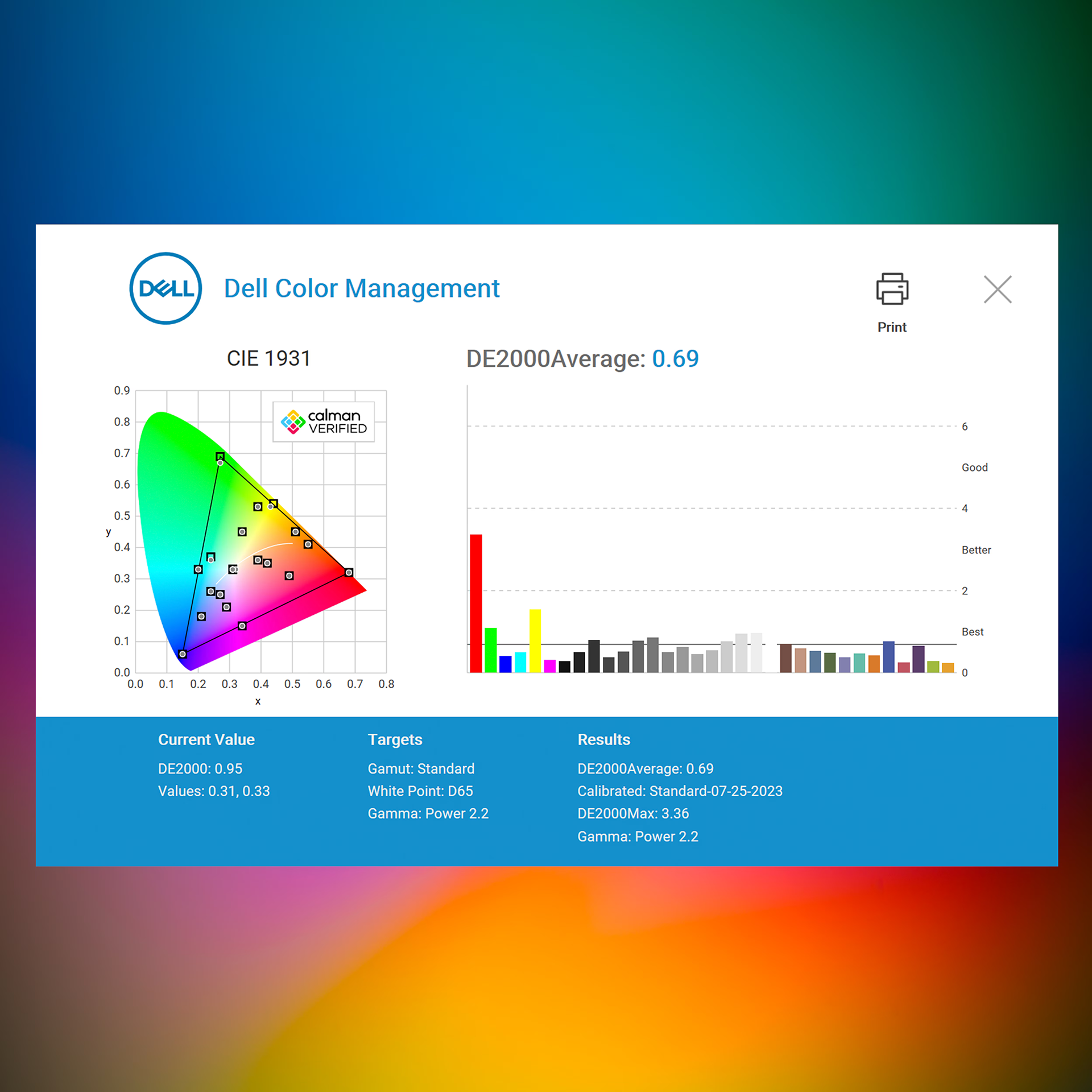 כוונן בקלות את צבעי המסך שלך עם תוכנת Dell Color Management החדשה, המאושרת על ידי Calman Verified.