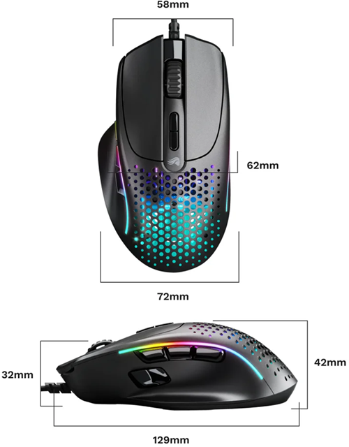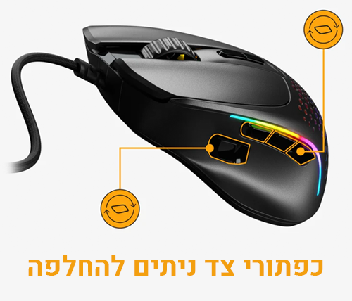 עכבר גיימינג ארגונומי חוטי ל-MMO כולל כפתורים מכניים תאורת RGB ו DPI גבוהה GLORIOUS MODEL I בצבע שחור