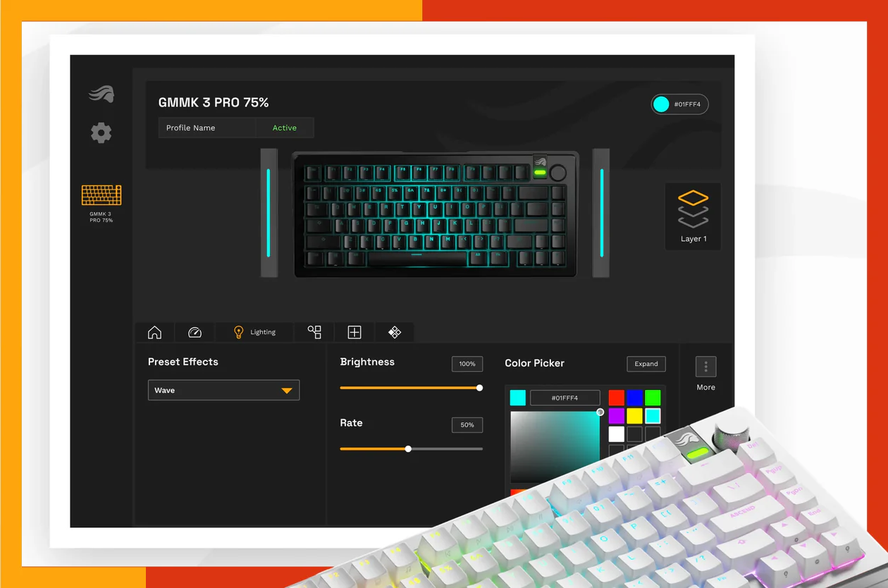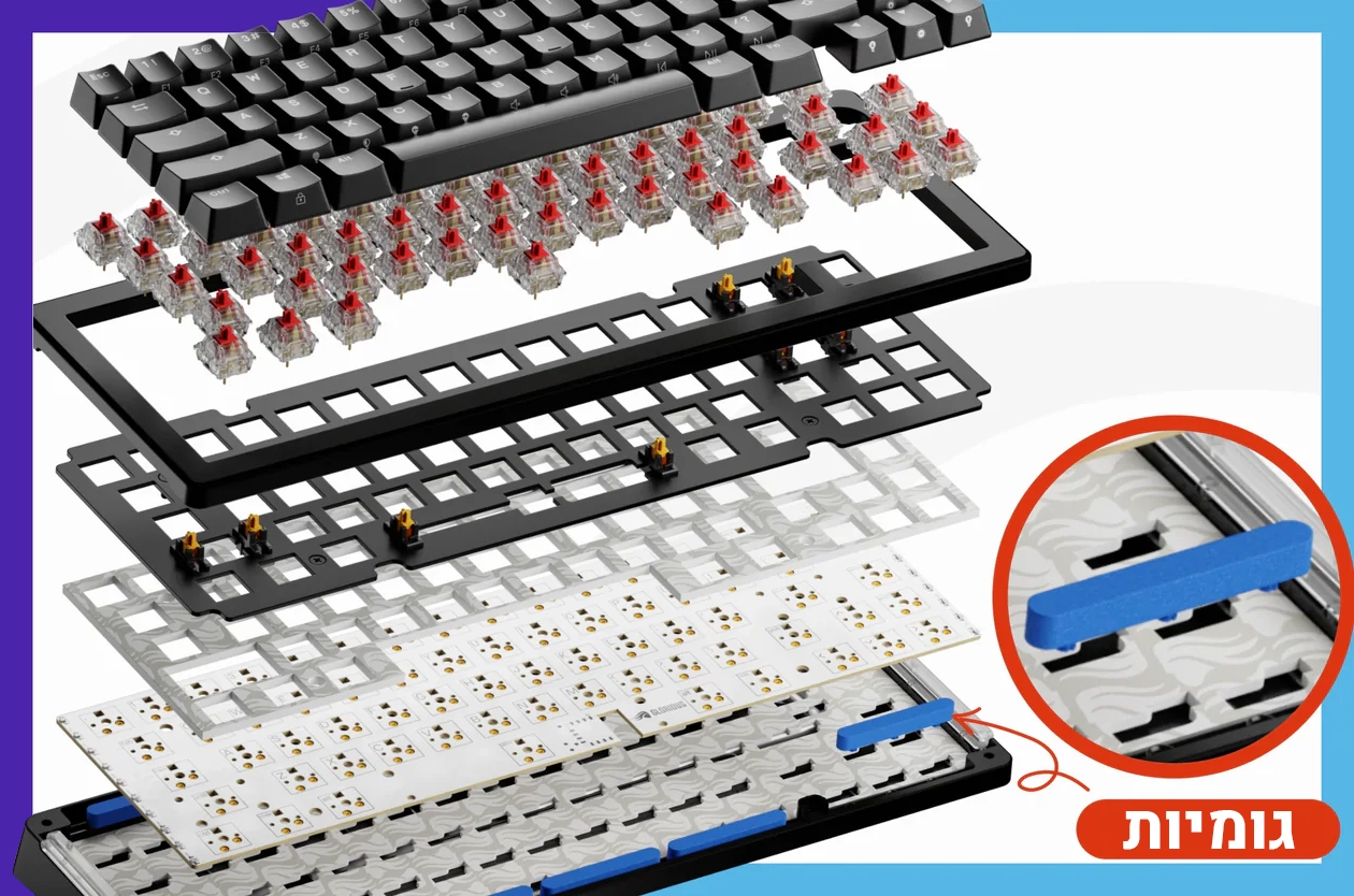 תוכלו להתאים את חווית ההקלדה והנוחות המושלמת עבורכם באמצעות התאמת רמת הקשיחות והגמישות מתוך מגוון של גומיות (gaskets) שניתנות להחלפה וכמו כן, התאמת האקוסטיקה של המקלדת באמצעות לוחות מתגים שניתנים להחלפה.