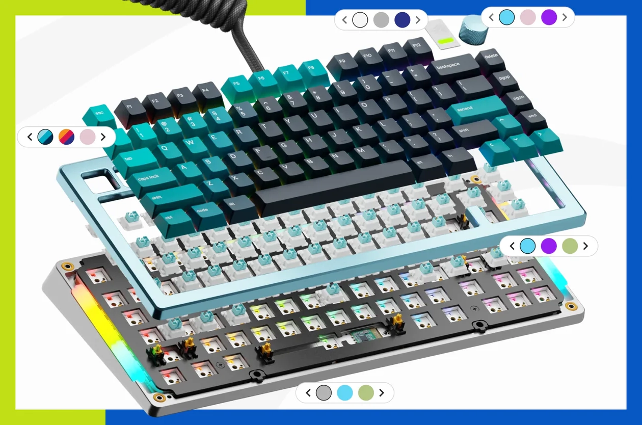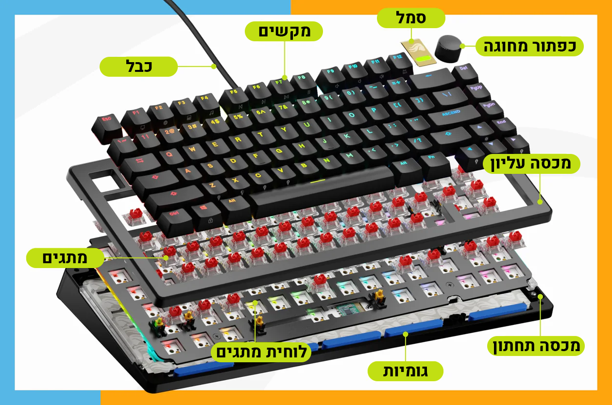 תוכלו להתאים את המקלדת שלכם ביד חופשי, שליטה מלאה ולמצוא מגוון רחב של קומבינציות שיתאימו לסגנון האישי שלכם. ברמת מקשים, מדבקות, כפתורים ייחודיים, מכסים חלקים פנימיים, מתגים וגם כבלים.